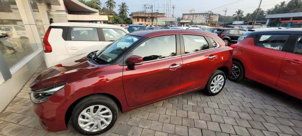 On the morning of 4th Jan 2024, I got a call from the sales team 😇 telling me that there is an opulent red colour Baleno Zeta manual in their stock yard, which is 100 kms away from my place.