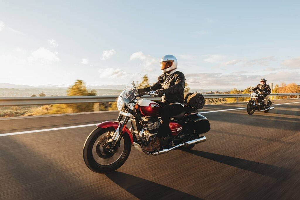 The Royal Enfield Super Meteor 650 is a laid-back cruiser built around a 648 cc air-oil-cooled parallel-twin engine that produces around 47 PS and 52.3 Nm, paired to a 6-speed gearbox, and tuned for smooth, relaxed highway riding. It features classic cruiser styling with a low-slung seat, teardrop fuel tank, USD front forks (a first for RE), a digi-analog instrument cluster with Tripper navigation, LED lighting, and comfortable ergonomics designed for long journeys, blending traditional aesthetics with modern tech and strong midrange performance.